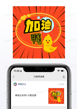 网络热词加油鸭新媒体公众号小图次图桔红放射线海报