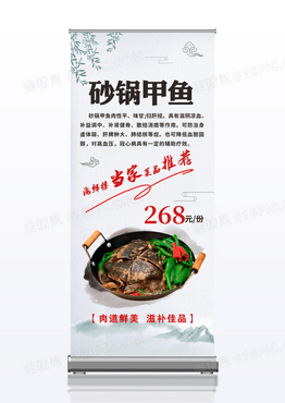 简约大气灰色系砂锅甲鱼宣传展架宣传展架甲鱼展架设计