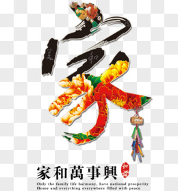 家和万事兴金色毛笔字