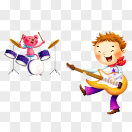 3D卡通两个年轻男人在弹吉他打架子鼓免抠元素