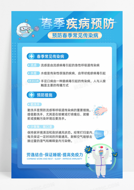 蓝色春季疾病预防海报