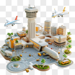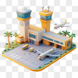 3D旅游机场飞行AI作图icon的风格插画人物与飞机机场安检等旅游元素主题免抠元素