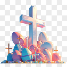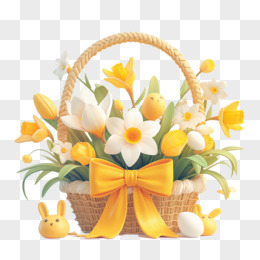 3D卡通兔子和一大筐复活节彩蛋免抠元素
