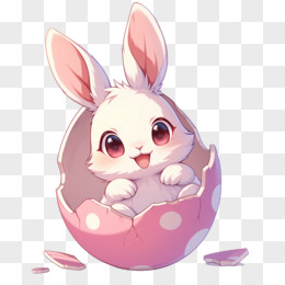 卡通从黄色彩蛋中钻出复活节兔子免抠元素