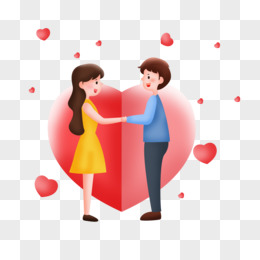 手绘卡通情人节情侣牵手