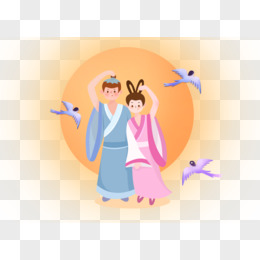 七夕情人节快乐情侣牛郎织女喜鹊爱心树枝月亮渐变