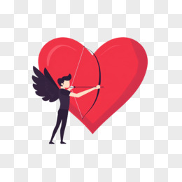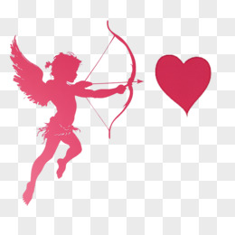 粉色剪影爱神丘比特射箭射向爱心免抠元素