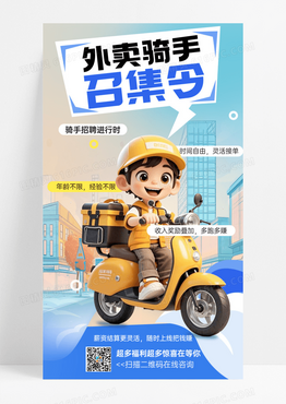 蓝色简约外卖骑手招聘活动宣传手机海报