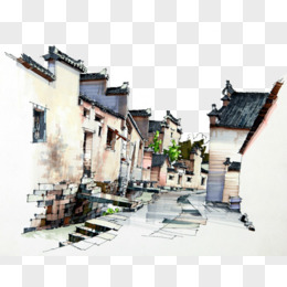 手绘江南的街道素材