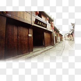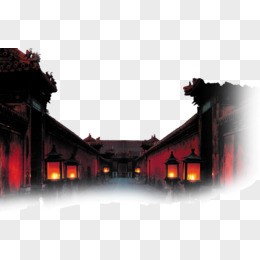 手绘国潮风中式街道素材