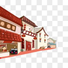 城市矢量手绘元素灯马路街道店铺椅子牌子