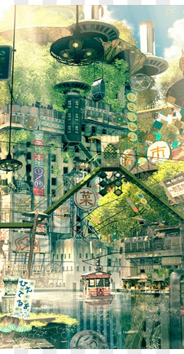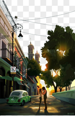 手绘城市建筑 插画 手绘 城市街道 巴士