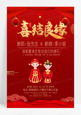 新中式中国风结婚喜结良缘背景喜结良缘婚礼喜庆红色海报婚庆