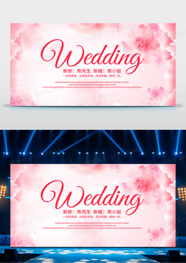 粉色唯美婚庆婚礼花纹背景我们结婚啦婚礼签到处舞台背景展板设计