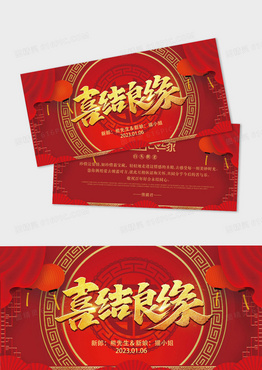大气红色喜庆剪纸新婚贺卡百年好合祝福结婚祝福卡贺卡