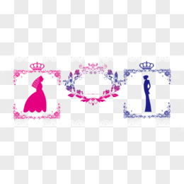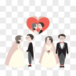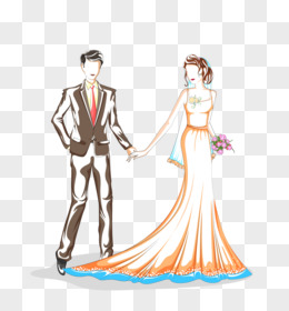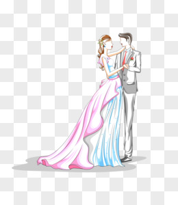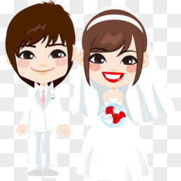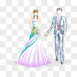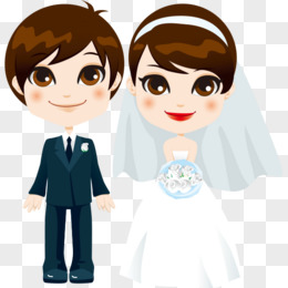 卡通穿白色西服的新郎和蓝色婚纱的新娘免抠元素