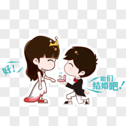 3D卡通穿西服婚纱的新郎新娘免抠元素