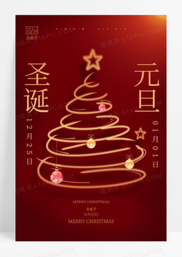 红色圣诞节元旦节双旦活动海报圣诞节庆圣诞迎元旦