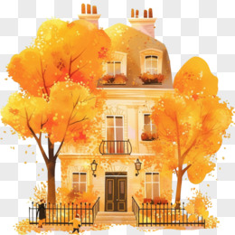 卡通风秋天金黄色树下的自动贩卖机免抠元素
