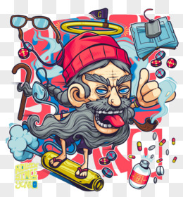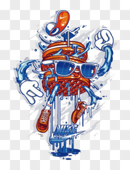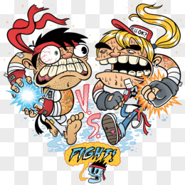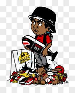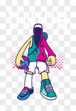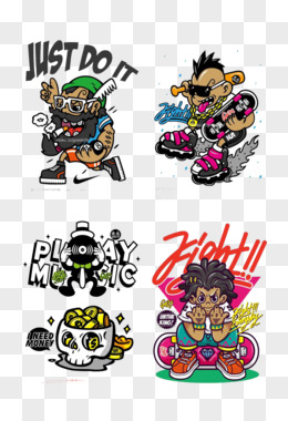 卡通手绘两个男孩在街头表演街舞免抠元素