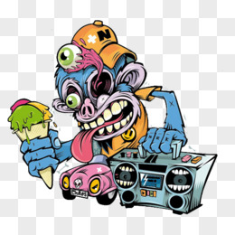 手绘卡通嘻哈男孩跳街舞免抠元素