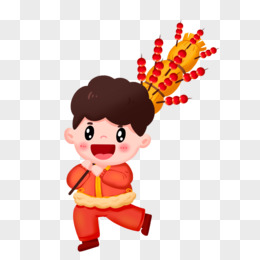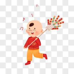 卡通扁平风福娃高兴的背着糖葫芦串免抠元素