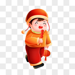 手绘卡通男孩吃冰糖葫芦免抠元素