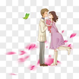 卡通手绘蜡笔可爱Q版情侣亲亲元素
