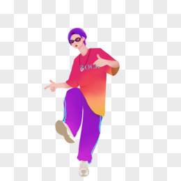卡通手绘蓝衣男孩表演街舞免抠素材