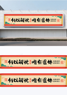 简约大气中国风光荣退休仪式欢送会何以解忧唯有退休横幅围挡标语