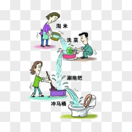 一组手绘矢量节约用水一水多用合集之洗脸水再利用元素