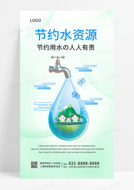 蓝色清新插画简约大气节约水资源手机海报全国城市节约用水宣传周