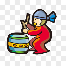手绘卡通古代贫民击鼓鸣冤免抠元素