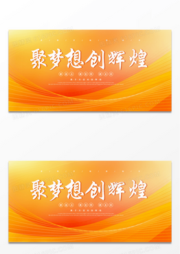 橙色渐变几何线条聚梦想创辉煌宣传展板