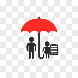 极简线条两个小人和保险单站在打着伞的房屋下免抠元素