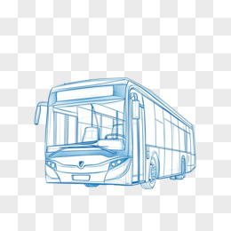 蓝色线条交通工具巴士线稿免抠元素