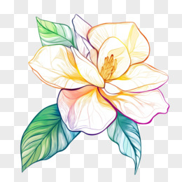 彩色线条栀子花线稿免抠元素