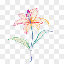 彩色线条百合花线稿免抠元素