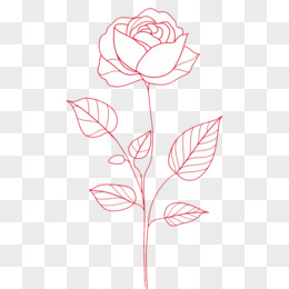 红色线条玫瑰花线稿免抠元素