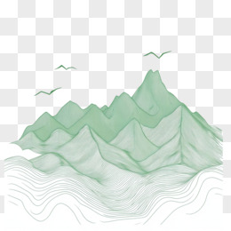中式绿色线条山水和小鸟免抠元素