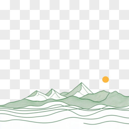 中式绿色线条山水和太阳免抠元素