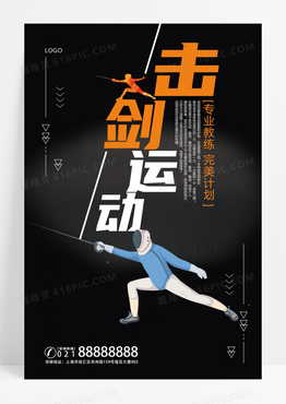 简约风击剑运动宣传海报
