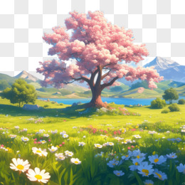 3D卡通一颗樱花树免抠元素