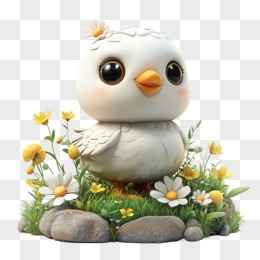 3D立体风格春天花丛中一只七星瓢虫免抠元素