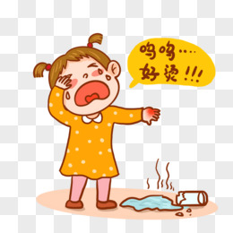 手绘卡通手烫伤的小女孩免抠元素