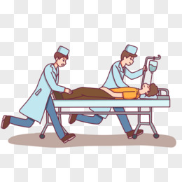卡通手绘护士医生抬担架转移病人免抠素材