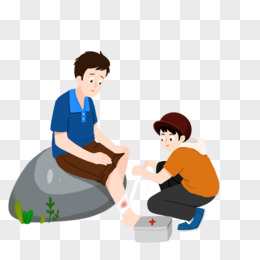 手绘卡通救助晕倒的人免抠素材