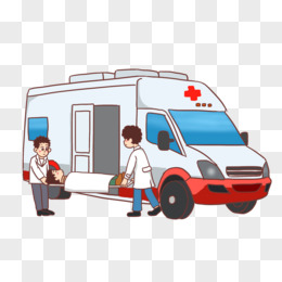 手绘卡通救护车救人免抠元素