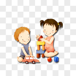 手绘卡通儿童玩乐高玩具场景插画免抠元素