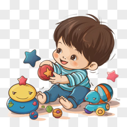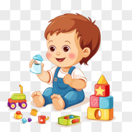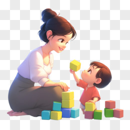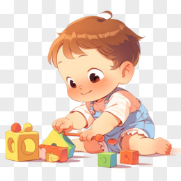 卡通小男孩小女孩在玩积木游戏免抠元素
